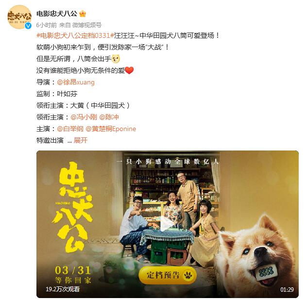 2023/03/04电影《忠犬八公》定档 《忠犬八公》主演是中华田园犬...