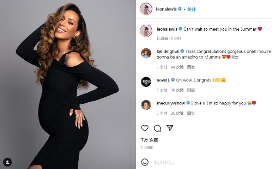 刘易斯分享了黑衣孕照,也透露预产期在今年夏天:“迫不及待要在夏日与你相见!”