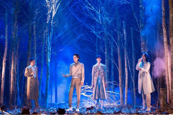 图一:李承铉阵营卡其装演唱《花祭》 逆光中与落叶融为一体感染力强